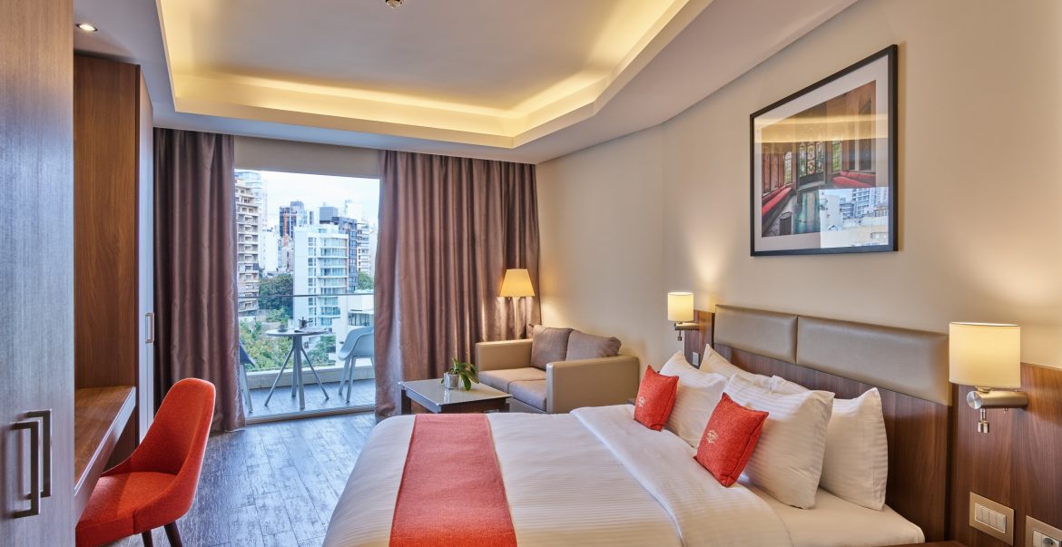 The Premium Room with Balcony provides a deluxe stay with a queen-sized bed enhanced with a plush mattress topper, spacious balcony, convenient kitchenette and unique services and amenities. The balcony is designed with a comfortable seating area allowing guests to overlook Beirut’s dynamic city scenery.