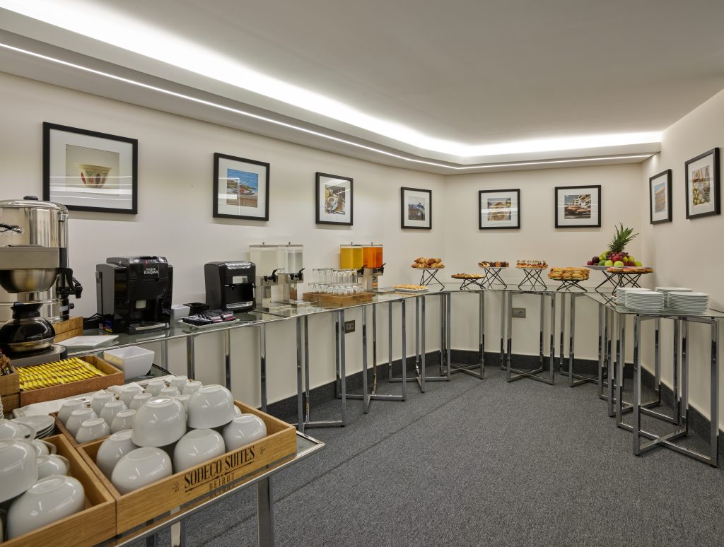 The Breakfast Buffet is available for guest use daily from 7:00 am to 11:00 am on the Mezzanine Floor. A large variety of stations are available including the beverage, cereal, bakery, cold cuts, cheese, hot display, fruits and crepe station.